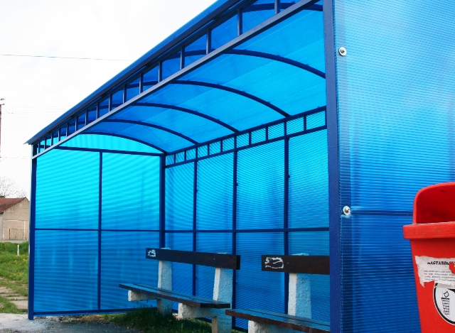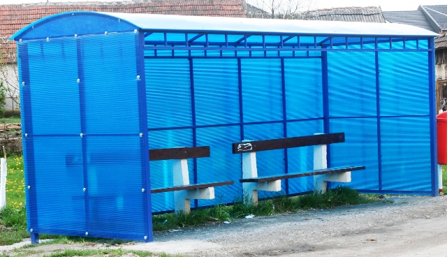 Statiile BUS - Propunem cateva tipodimensiuni de statii de autobus, avand un design atractiv. - Sunt constructii solide din schelet metalic si acoperire cu policarbonat celular de 10mm. - 3 pereti asigura o buna protectie la ploaie si vant.